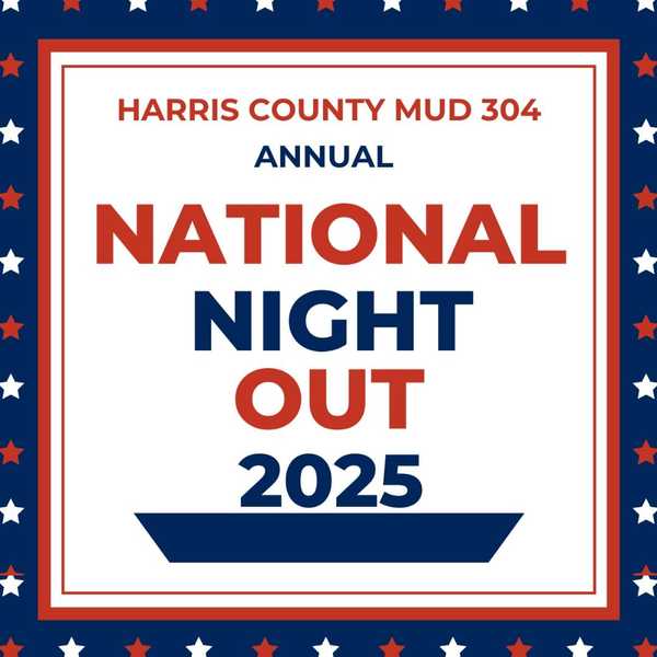Harris County MUD 304 Annual National Night Out! is Tuesday, October 7, from 6 p.m. - 9 p.m. at the MUD 304 Administration Building! Bring your family and community spirit!