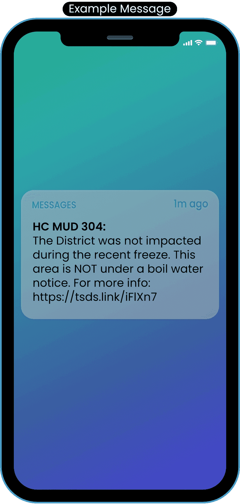 Residents registered for this free service will receive text and/or email notification explaining the basics of the situation with a short link to the news post on the District website with more complete details.